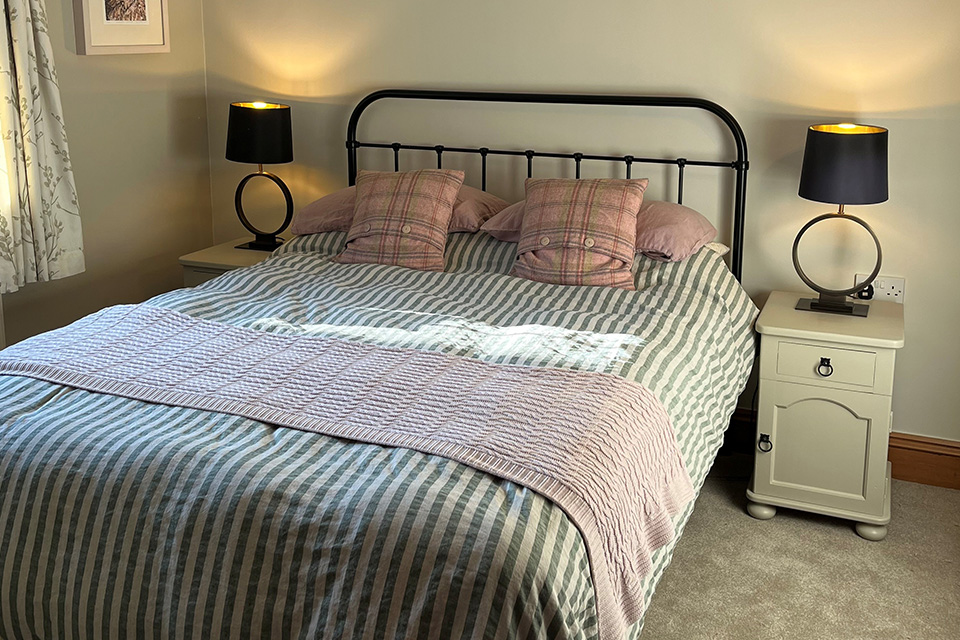 Gwely haearn maint ‘King’ Newydd, ynghyd a charped, paent a dillad gwely 100% linen. Yn yr ystafell ymolchi mae blwch cawod, a bath trobwll mawr - sy’n wych i ymlacio ynddo ar ôl taith hir ar hyd Llwybr Arfordir Llŷn. |